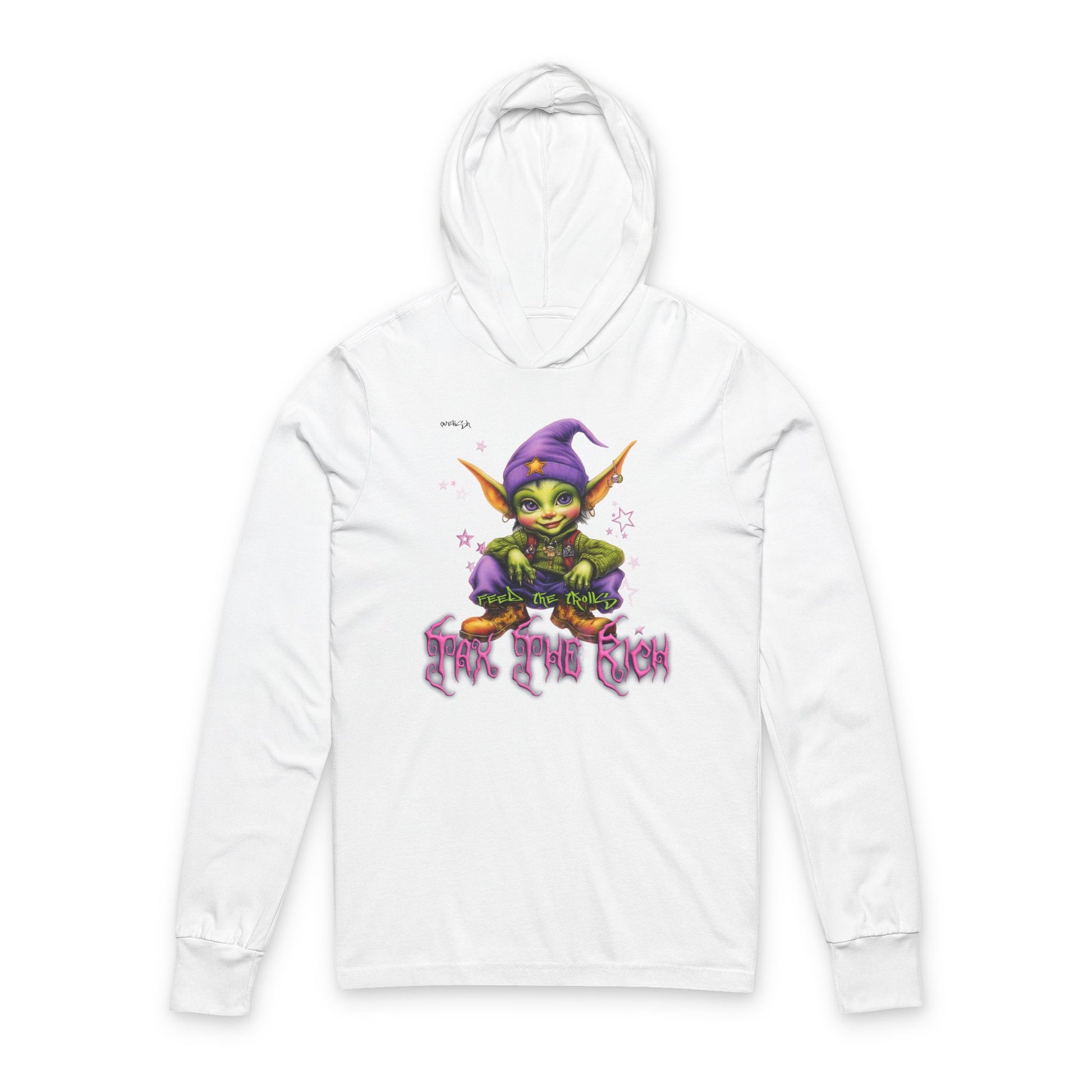 A hoodie for when you want to stay warm, comfy, and quietly anti-capitalist. Featuring the signature goblin who’s just trying to live, cause mild disruption, and maybe redistribute a little wealth. Soft on the inside, spicy in spirit — this hoodie is perfect for layering, loitering, or low-effort rebellion.